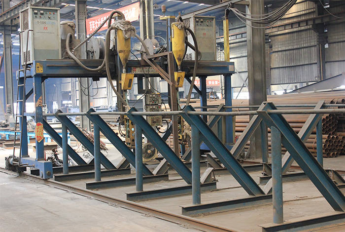 引進(jìn)了國(guó)內(nèi)專業(yè)的全自動(dòng)管相貫線等,離子切割機(jī)、網(wǎng)架桿件雙自動(dòng)焊接機(jī)、網(wǎng)架支托自動(dòng)焊接設(shè)備、龍門(mén)埋弧焊及數(shù)控火焰切割機(jī)等優(yōu)質(zhì)生產(chǎn)設(shè)備